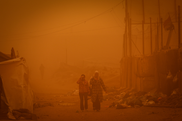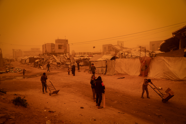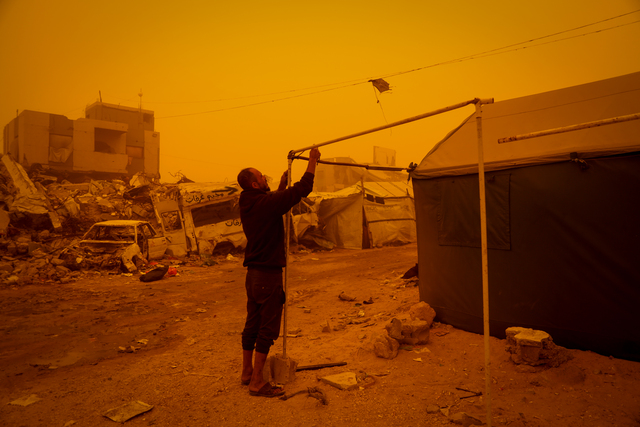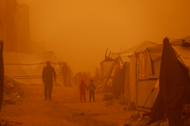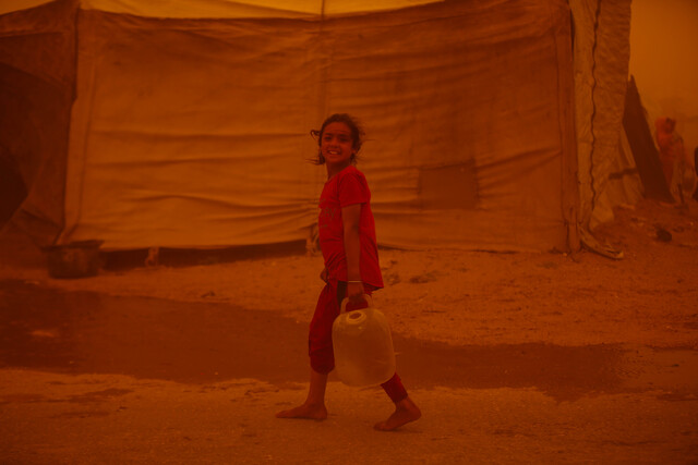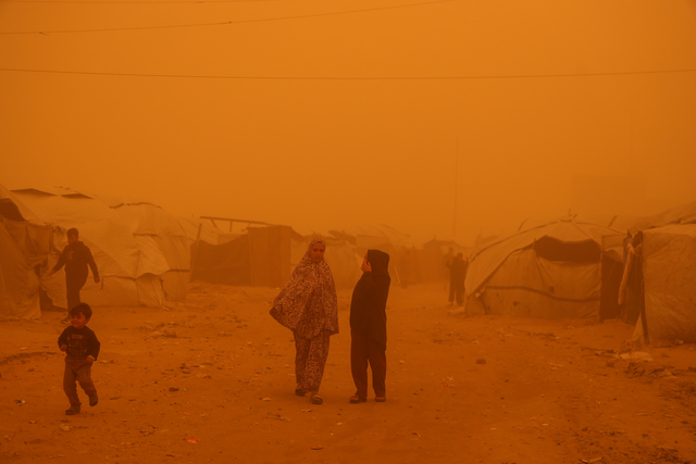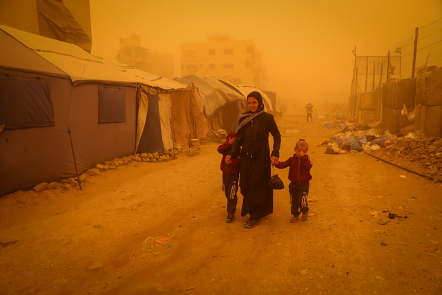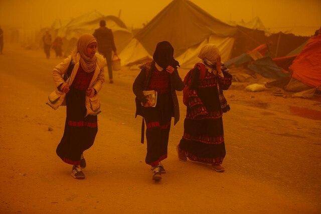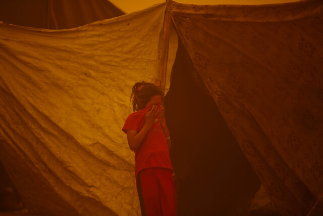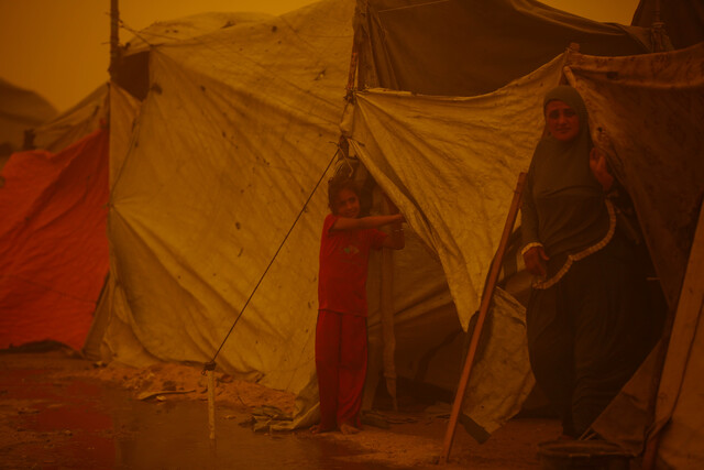 Güvenlik ve barınma koşullarının neredeyse bulunmadığı ortamda kum fırtınasının, zaten zor şartlarda yaşayan yerinden edilmiş ailelerin yükünü daha da ağırlaştırdığı belirtildi.