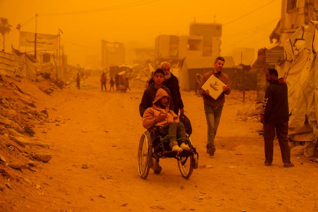 Gazze'de İsrail'in şiddetli saldırılarından kurtulabilen Filistinliler, temel ihtiyaçlar ve tıbbi malzemelerin eksikliği, yer yer etkili olan şiddetli soğuk ve fırtınalı hava ile son olarak etkili olan kum fırtınası nedeniyle ciddi zorluklar yaşıyor.