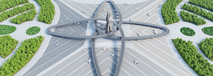 Çin’de hayal edilen havalimanında odak, yolcuların torus benzeri fütüristtik bir yapıda, araçları ile tesise kolayca girip çıkabilmeleri olmuş. Varışta tüm uçaklar sorunsuz bir şekilde entegre edilecek ve yolcular inmesi gereken kapılara kolayca inecekler. Bu sistem uçakla bağlantılı durumda ve pilotun kontrolüyle sağlanıyor. Havalimanını merkezi lüks bir otel şeklinde tasarlanmış bir kule şeklinde. Uçaklar bu kulenin etrafında taksi işlemini gerçekleştiriyorlar.