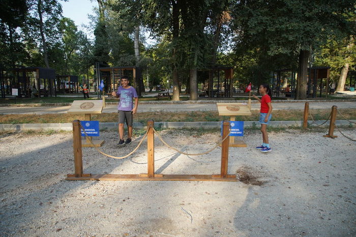 Edirne'de Söğütlük Millet Bahçesi'nde konuşlandırılan Geleneksel Oyunlar Tırı'nda bir araya gelen çocuklar, geleneksel oyunları oynama fırsatı buldu.