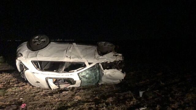 Çarpmanın etkisiyle sürücüsünün hakimiyetini kaybettiği otomobil, takla atarak devrildi.