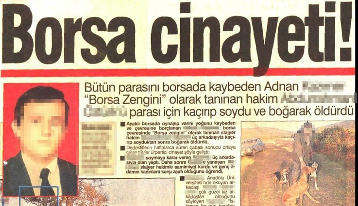 Ortaya çıkan bilgilere göre cinayete uzanan sürecin merkezinde, Ayaklı Borsa’da işlem yapan 19 yaşındaki Adnan isimli genç bulunuyordu. Soruşturma, olayda toplam dört kişinin yer aldığını ortaya koydu. Detaylar ise tüyler ürperticiydi. Adnan’ın babasından aldığı 13 milyon lirayı borsada batırdığı, ardından büyük bir borç yükünün altına girerek çeşitli kişilerden tehdit almaya başladığı anlaşıldı.