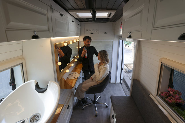 Sırt çantasıyla 12 ülkeyi dolaşan kuaför Fikret Akpınar, kuaför salonuna dönüştürdüğü karavanıyla hem seyahat ediyor hem de mesleğini sürdürüyor