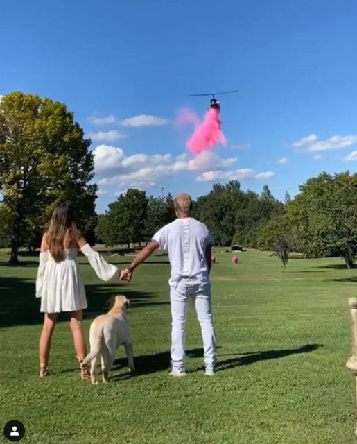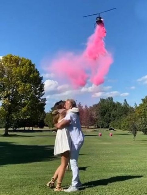 Gianluca Vacchi ve Sharon Fonseca, çocuklarının cinsiyetini helikopterden üstlerine dökülen pembe boya ile öğrenmişti.