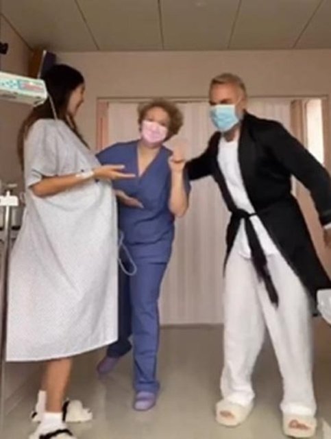 Çiftin eğlenceli dansına Sharon Fonseca'yı doğuma hazırlayan hemşire de dahil olmuştu.