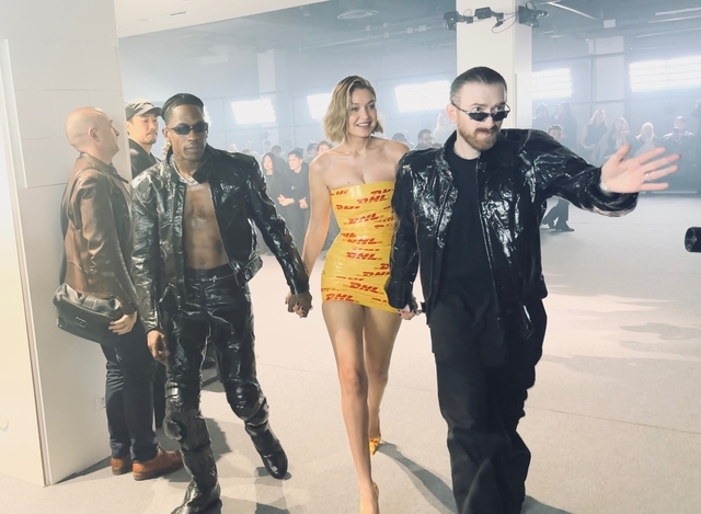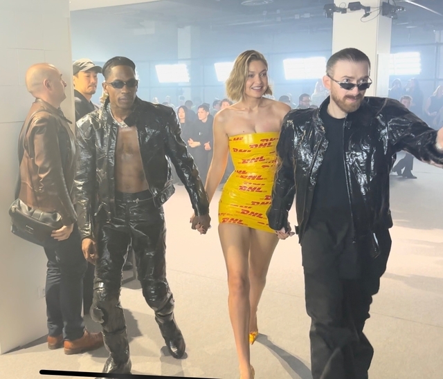 Gigi Hadid ile Kylie Jenner'in geçen yıl ayrıldığı sevgilisi Travis Scott, podyumdan el ele tutuşarak ayrıldı.