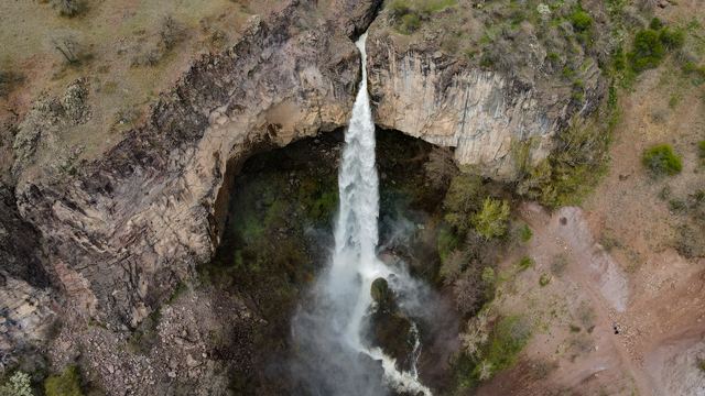 Ağustosta kuruma noktasına gelen Çağlayan Şelalesi, ilkbaharda kar sularının erimesiyle canlanıyor.