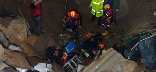 Ekipler toprak altından sesini aldıkları işçi Şinasi Özdemir'in (50) çıkarılması için çalışmalarını sürdürüyor. Alanda ekipler, elden ele kovalarla toprak molozonu kaldırmak için zamanla yarışıyor.