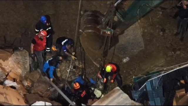 Göçükte enkaz altında kalan Şinasi Özdemir ile sesli iletişim kuran kurtarma ekipleri, bölgeye gelen kepçe ve vinç yardımıyla çalışmalarını sürdürüyor.