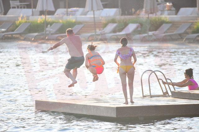 İskeleden denize atlamayı tercih eden yakın arkadaşların eğlenceli anları böyle görüntülendi.