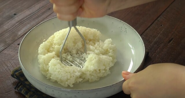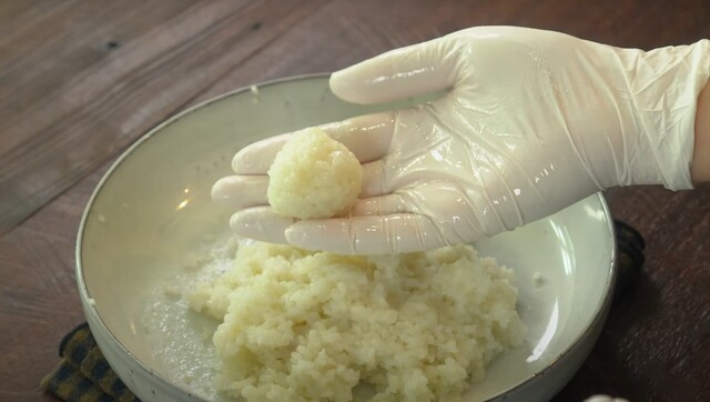 Pirinçten bir parça koparın ve yuvarlak top haline getirene kadar yuvarlayın. Bu işlemi elinizdeki pirinç bitene kadar devam ettirin.