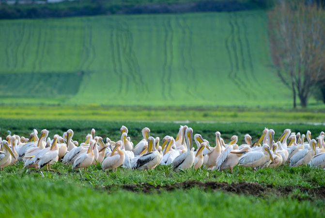 Göç yolundaki pelikan sürüsünün Bursa molası