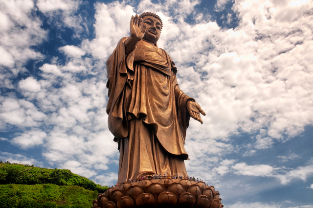Çelik, bakır alaşımı ve altından yapılan bu dev Buda heykeli 1997 ile 2008 yılları arasında inşa edilmiştir. Heykelde tasvir edilen figür Vairochana Buddha’dır. Mahayana ve Tibet Budizmi’nde, yalnızca tarihsel Buda (Gautama ya da Shakyamuni) değil, birden fazla Buda olduğuna inanılır ve Vairochana, diğerlerinin tezahürü olduğu en yüce ve kozmik Buda olarak kabul edilir.