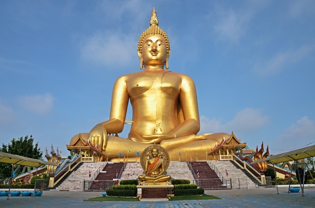 Tayland’ın Ang Thong eyaletindeki Wat Muang Tapınağı’nda yer alan bu altın renkli Buda heykeli, 92 metre yüksekliğe ve 63 metre genişliğe sahiptir. Bazı Tayland kaynaklarında yüksekliği 95 metre olarak da geçer. Genellikle “Tayland’ın Büyük Budası” olarak anılsa da resmî adı oldukça uzundur: Phra Phuttha Maha Nawamin Sakayamuni Si Wiset Chai Chan.