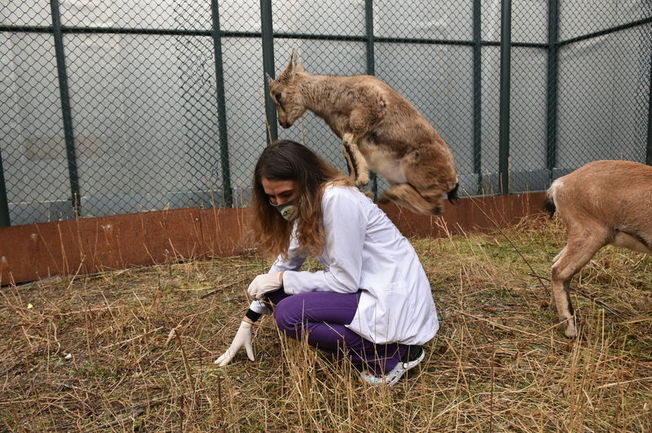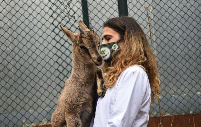 Dağ keçilerini adeta anne şefkatiyle büyütmeye çalışan bakıcılar, zamanlarının büyük bir bölümünü dağ keçisi yavrularının bakımına ayırıyor.