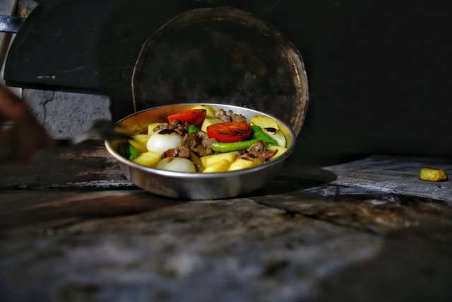 Kebabın, yaylalarda beslenen ve bir yaşına basan süt oğlaklarının ön ayakları ile kaburga kemiklerinden yapıldığına dikkati çeken Kale, "Oğlaklar dağlarda kekikle beslendiği için bölgede 'kekik kokulu et' diye adlandırılıyor. Oğlak etini taş fırında ortalama bir saat 45 dakika pişiriyoruz. Et çok yumuşak bir hal alıyor." dedi.