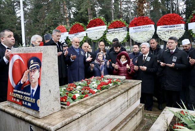 Diyarbakır'da uğradığı saldırıda beraberindeki 5 silah arkadaşıyla şehit edilen Emniyet Müdürü Ali Gaffar Okkan için şehadetinin 25'inci yılında, Sakarya'nın Hendek ilçesindeki mezarı başında anma töreni düzenlendi.