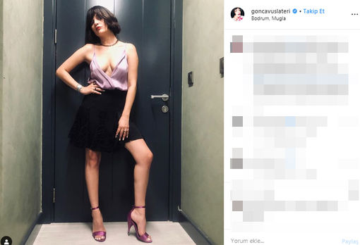 Bodrum'da tatil yapan Gonca Vuslateri dekolteli kıyafetiyle verdiği pozu Instagram hesabından paylaştı.
