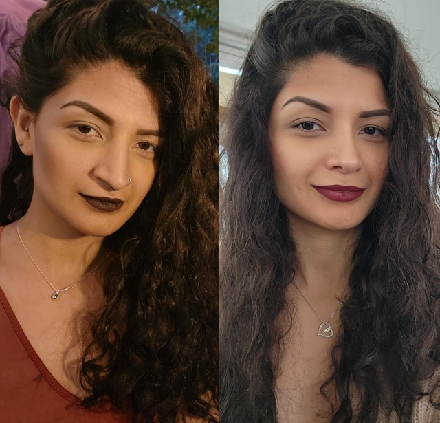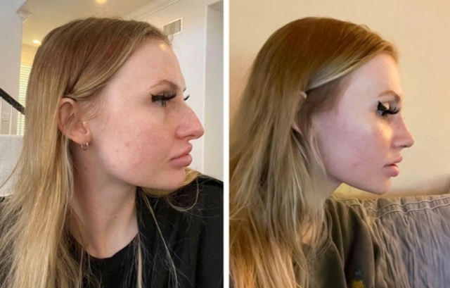 2. “Öncesi (sol) ve sonrası (sağ)! Rinoplasti ve çene/çene liposuction ameliyatından 8 ay sonra ve dudak kaldırma ameliyatından 3,5 ay sonra!”