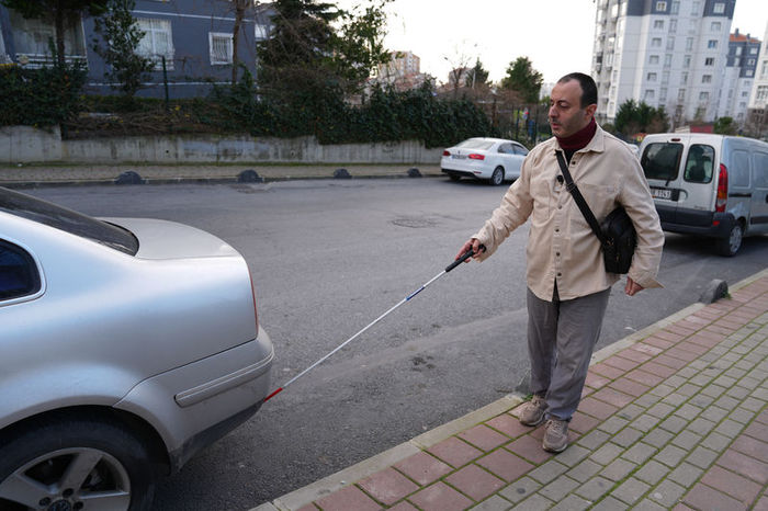Yüzde 90 görme engelli Serhat Esen, İstanbul’daki evinden her gün işe gitmek için kullandığı otobüs durağına kadar olan kaldırıma kılavuz yol yapılması için 3 yıldır tek başına mücadele ediyor.