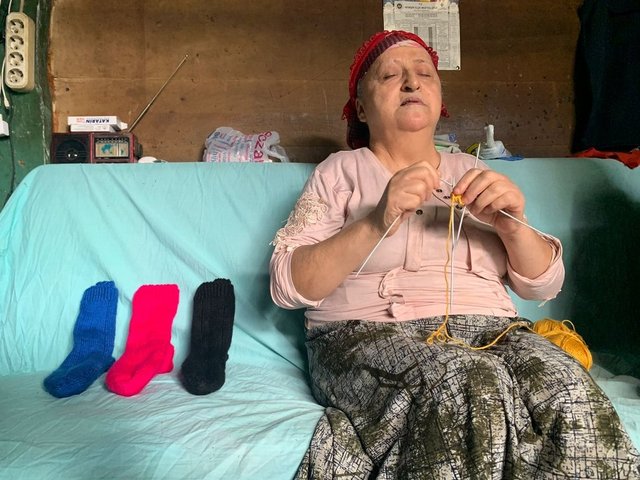 Rize'nin Hemşin ilçesinde hastalık nedeniyle 8 yaşında görme yetisini kaybeden 58 yaşındaki Gönül Sağlam, annesinden öğrendiği örgü ile hayata sarılıp, günlük işlerini yapıyor. Ördüğü rengarenk çorapları ile ailesine de destek olan Sağlam, "Görmüyorum ama her şeyi aklımdan yapabiliyorum" dedi