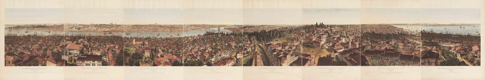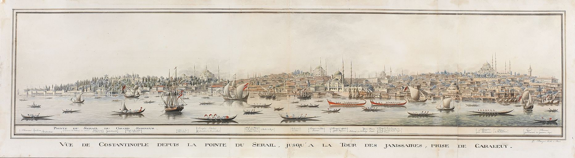İngiliz ressam Henry Aston Barker’ın 1799'da Galata Kulesi’nin tepesinden çizdiği eskizlere dayanarak oluşturduğu İstanbul Panoraması, elçilik sekreteri olarak İstanbul’da bulunan Philipp Franz von Gudenus’un 1741’de İsveç Elçiliği’nin çatısından yaptığı çizime ait gravür, Joseph Schranz’ın Karadeniz’den Marmara Denizi’ne Boğaz panoraması eserlerden birkaçı…