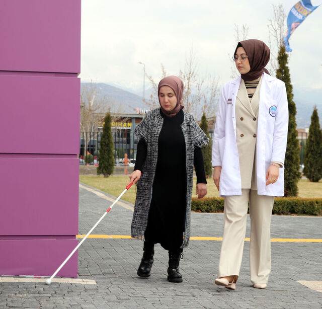 Kayseri'de, katarakt ve göz tansiyonu hastalığıyla dünyaya gelen müzik bölümü mezunu 25 yaşındaki Jale Yazır'ın, ilerleyen süreçte görme engeli yüzde 80 seviyesine geldi. Hastalık nedeniyle ileride gözlerini tamamen kaybetme ihtimali olan Yazır, kendisini bu sürece hazırlayarak baston eğitimi alıyor. Mesleğe atanacağı zamanı beklediğini belirten Yazır, "Göz tansiyonumun ilerlediğini, ileride de görme yetimi kaybedebileceğimi söylediler. Burada bastonla, 'hiç görmediğim zaman neler yapabilirim' diye kendimi geliştirmeye çalışıyorum. Burada baston çalışıyoruz. Gözüm kapalı neler yapabileceğimi, günlük yaşam faaliyetlerini öğreniyorum. Şu an diplomamı aldım, öğretmenim. En büyük hayalim, öğrencilerimi yetiştirmek" dedi