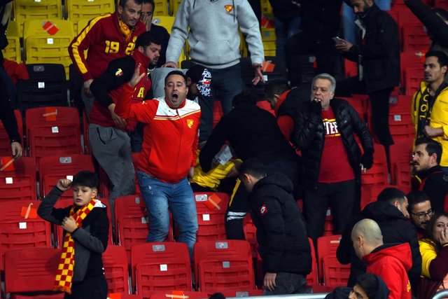 Göztepe-Altay derbisi çıkan olaylar nedeniyle yarıda kaldı. Altay tribününden Göztepe tribününe fişek atılırken, sahaya giren bir Göztepe taraftarı Altay kalecisi Ozan'a korner diğeri ile saldırdı.