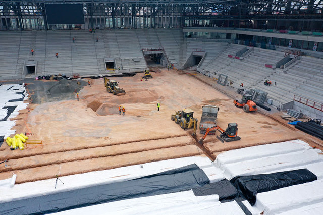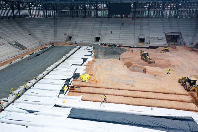 Sahadaki altyapı çalışmalarında ise sona gelinirken, drenaj ve havalandırma tamamlandıktan sonra sulama tesisatları yapılacak ve çim serimine geçilecek.