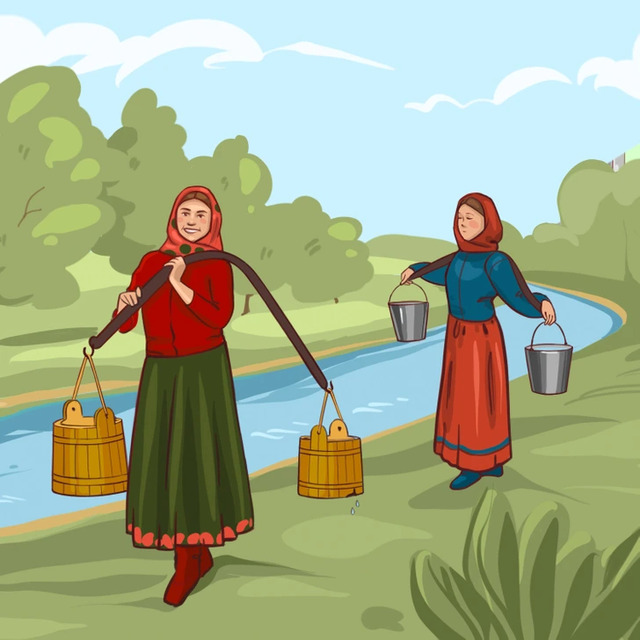 Cevap: Öndeki kadının sağda yer alan kovası delik bu yüzden yol boyunca döküleceği için arkadaki kadın daha fazla su getirir.