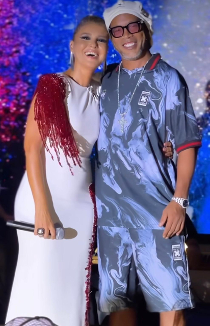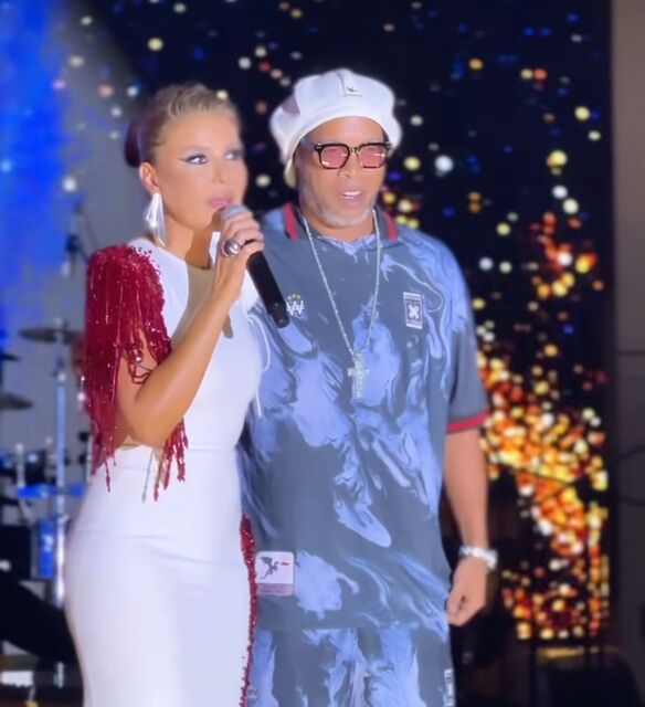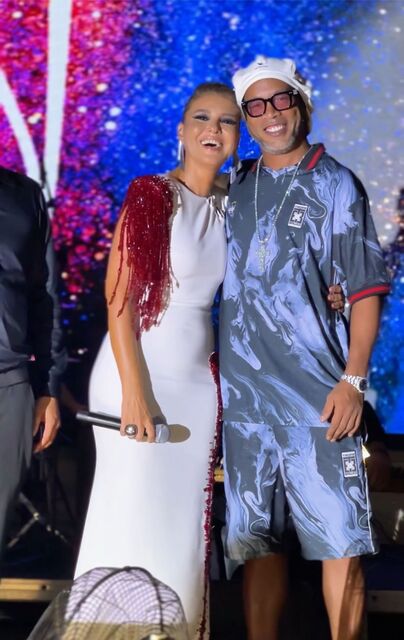 Kıbrıs'taki bir otelde sevenleriyle buluşan Gülben Ergen, sahnesinde efsane futbolcu Ronaldinho'yu ağırladı. İkilinin keyifli anları objektiflere yansıdı
