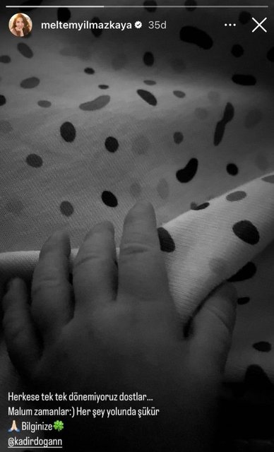 İspanya'nın Barcelona kentinde doğum yapan Meltem Yılmazkaya, oğlunun elini paylaşarak, "Herkese tek tek dönemiyoruz dostlar... Malum zamanlar :) Her şey yolunda şükür" dedi.