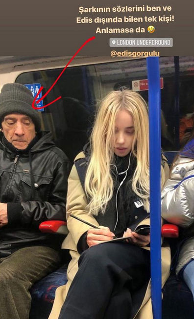 Ünlü şarkıcı, bu kez Londra metrosunda şarkı sözleri yazdığı anları takipçileriyle paylaştı. Şarkının sözlerini yazdığı sırada yanındaki yolcunun da kendisini izlediğini fark eden Gülşen, o anları, "Şarkının sözlerini ben ve Edis dışında bilen tek kişi! Anlamasa da..." notuyla yayınladı.