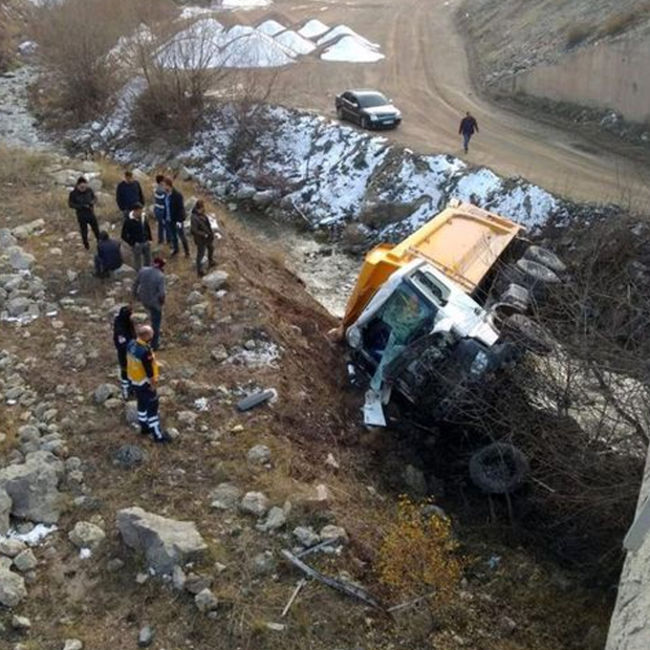 Gümüşhane'de hafriyat yüklü kamyon kontrolden çıkarak köprü korkuluklarını kırıp 15 metre yüksekten dere yatağına düştü. Kazada kamyon sürücüsü hayatını kaybetti