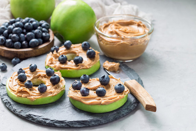 Fıstık ezmesi ve elma dilimleri