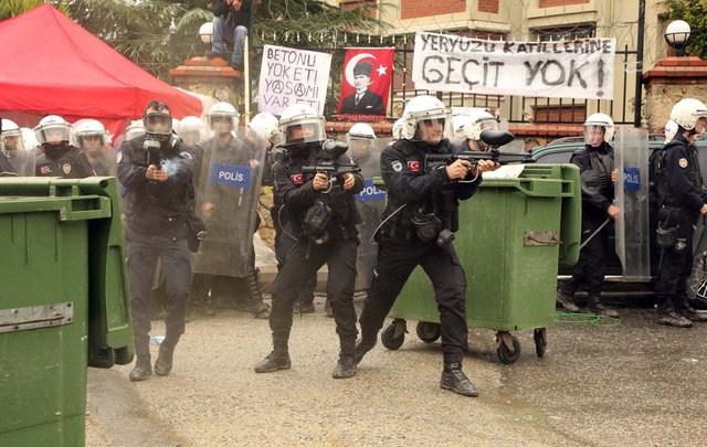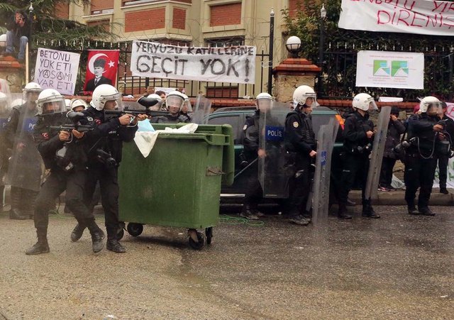 Polisin sert tutumunu kınayan eylemciler "Öfkenizi kusuyorsunuz" diyerek isyan ettiler. Ayağına plastik mermi isabet eden yaşlı bir adam da "Kime karşı mücadele ediyorsunuz. Polisin inşaat koruduğu tek ülke Türkiye'dir" dedi.