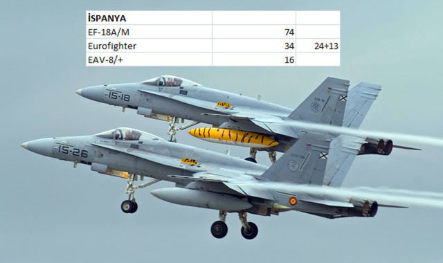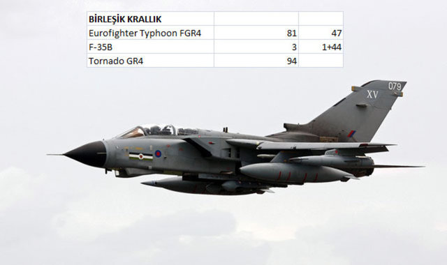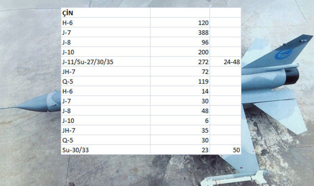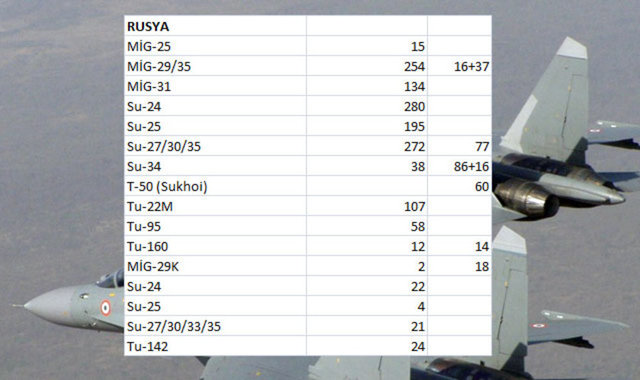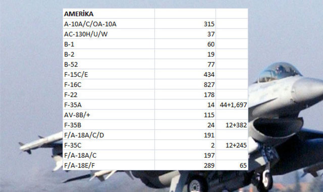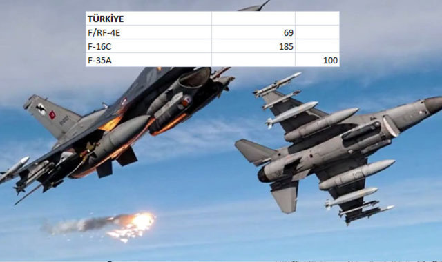 Türkiye'de hangi savaş uçağından kaç tane var?(İlk rakam aktif görevdeki savaş uçağı sayısını, ikinci rakam ise sipariş aşamasındaki uçak sayısını gösteriyor)