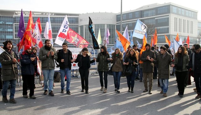 Duruşmayı izlemek için farklı illerden gelenler, İstasyon Mahallesi'ndeki pazar yerinde toplandı. Buradan Kaldırım Caddesi'ni takip ederek, spor tesisleri önündeki arama noktasına kadar sloganlar atarak yürüyen grup, kendileri için ayrılan bölüme geçti.