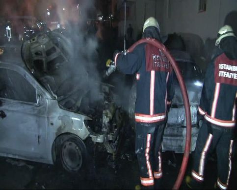 Üsküdar'da bir sitenin bahçesinde park halinde bulunan 9 otomobil, kimliği belirsiz kişi ya da kişilerce kundaklandı