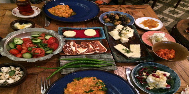 Serpme kahvaltısına bayılacaksınız. Peynirler, el yapımı reçeller, minik pişi sepeti ve mis gibi kokan kahvesi... Her şey birbirinden iştah açıcı.