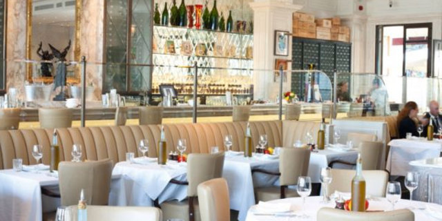 Dışarıda lüks otomobiller, içeride güzel manzara, masalarda tablet menüler, tabakta lezzetli risottolar...