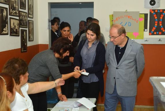 Başbakan Ahmet Davutoğlu'nun eşi Sare Davutoğlu, 25. dönem milletvekili genel seçimi için oyunu Çankaya İlkokulu'nda kullandı.