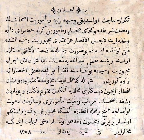 İşte, 1862 Ramazan’ının ilk günü yayınlanan bu resmî uyarının bugünün Türkçesiyle tam metni: