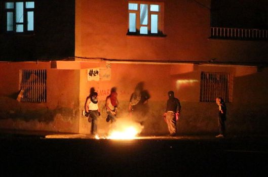 Polis ekiplerine, yoldaki barikatları açmak için iş makinesi eşlik ederken, Selehaddini Eyyubi Mahallesi'nde bir kişi gözaltına alındı. Olaylar gece geç saatlere kadar ara sokaklarda devam etti.