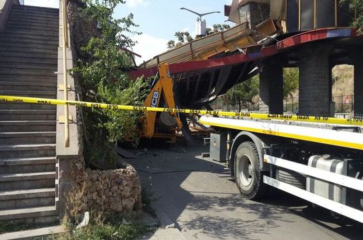 Ankara'nın Etlik Caddesi GATA yakınında, üzerinde lokanta bulunan üst geçit, iş makineleri yüklü bir kamyonun çarpması sonucu yıkıldı. Yarısı yıkılan köprü büyük bir gürültüyle çöktü. Olayda herhangi bir yaralanma olmadığı belirtildi.