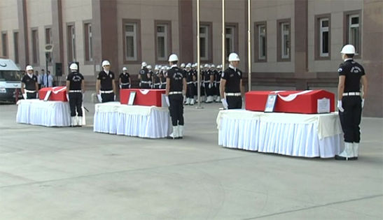 Diyarbakır merkez Kayapınar ilçesinde görev yaptıkları sırada kimliği belirlenemeyen bir teröristin uzun namlulu silahla yaptığı saldırı sonucu şehit olan trafik polisleri Ahmet Gılıç ve İlker Narin ile Şırnak'ın Silopi ilçesinde zırhlı polis aracına düzenlenen saldırıda şehit olan polis memuru Yılmaz Dikmen için Diyarbakır Emniyet Müdürlüğü bahçesinde cenaze töreni düzenlendi. Törene, İl Valisi Hüseyin Aksoy, Cumhuriyet Başsavcısı Ramazan Solmaz, İl Emniyet Müdürü Adnan Taşdan, askeri erkan, şehitlerin yakınları ve silah arkadaşları ile vatandaşlar katıldı.