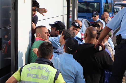 Otobüsten inerek terminale gitmek istediklerini söyleyen Suriyeli sığınmacılarla polisler arasında tartışmalar yaşanırken, bazı çocuklar gözyaşlarına boğuldu. Otobüse binmemekte ısrar eden bazı kişilere polisler müdahale etti. Bir kişinin kelepçelenerek otobüse bindirildi.