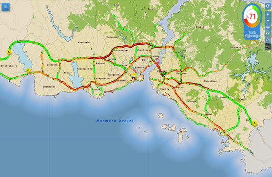 İstanbul'da cumartesi günü trafik kaosu yaşanıyor. İBB'nin yoğunluk haritasında oran yüzde 71 oldu.