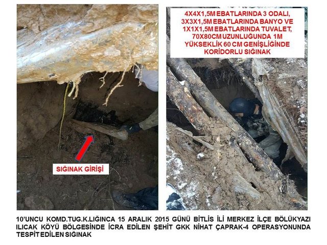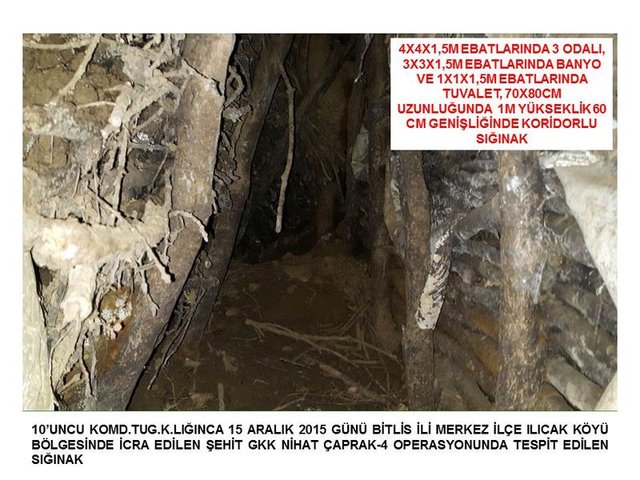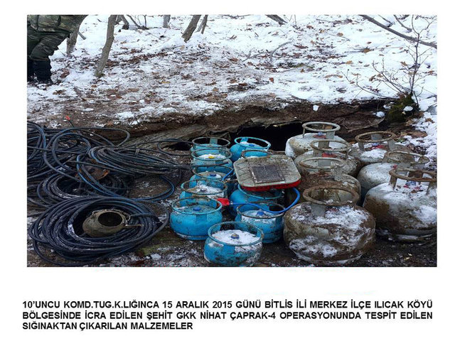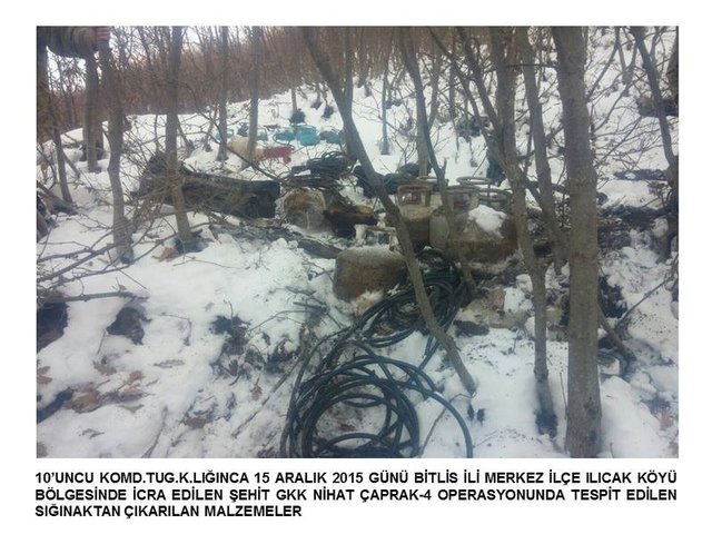 Bitlis 10'ncu Komando Tugay Komutanlığı tarafından 15 Aralık'ta Bitlis Merkez Ilıcak Köyü ve Bölükyazı bölgesinde Şehit GKK Nihat Çaprak-4 adı altında gerçekleştirilen operasyonla ilgili Genelkurmay Başkanlığı resmi internet sitesinde açıklama yaptı. Açıklamada, "Bitlis'de icra edilen operasyonda bölücü terör örgütü mensubu teröristlerce kullanılan 7 sığınakta, el yapımı patlayıcı yapımında kullanılan 50 adet tüp ile çok sayıda muhtelif yaşam malzemesi ele geçirilmiştir" denildi. Ayrıca Hakkari'de güvenlik güçlerince yapılan arazi arama taramasında tespit edilen el yapımı 2 patlayıcı imha edildi.