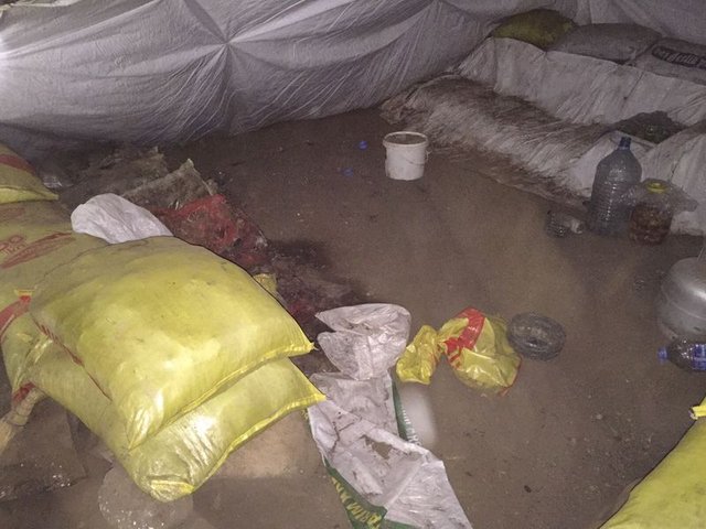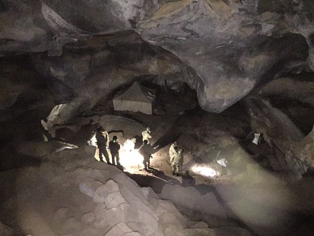Doğal sığınağa güçlükle giren güvenlik görevlileri, stoklanan malzemenin çokluğu karşısında şaşırdı. Bu kadar büyük miktardaki malzemenin nasıl taşındığı ve mağaraya yerleştirildiği konusunu araştıran güvenlik görevlileri, 13 X 50 metre ebadında ve 8 metre yüksekteki mağarada bulunan malzemelerin önce dökümünü yaptı.